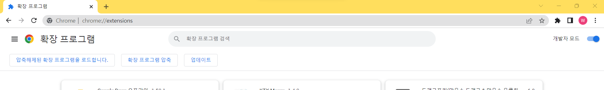 크롬을 열고 chrome://extensions/ 로 접속