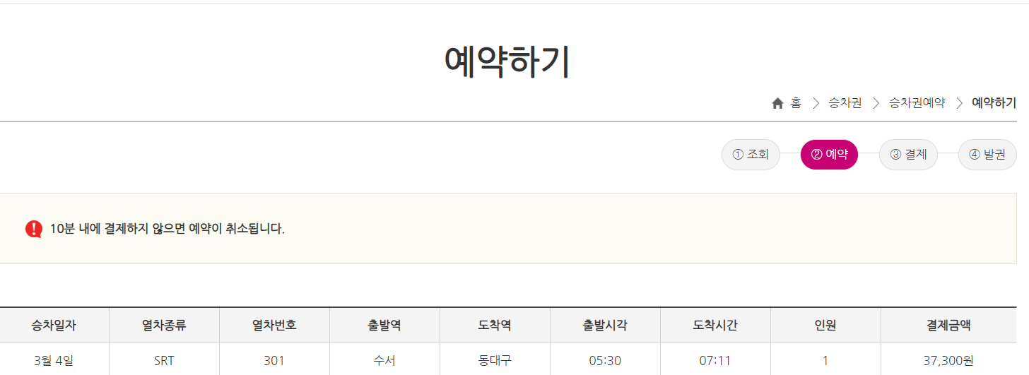 예약완료! 단 10분 내 결제하지 않으면 취소되니 유의해야한다